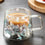 Mug Double Paroi en Verre avec Poignée et Design Fleuri